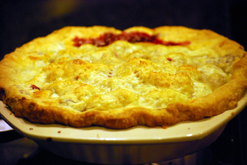 Pie is just a double crust filled with a mixture of berries, sugar and a little flour to thicken. My older son and I love blackberry pie above all others.